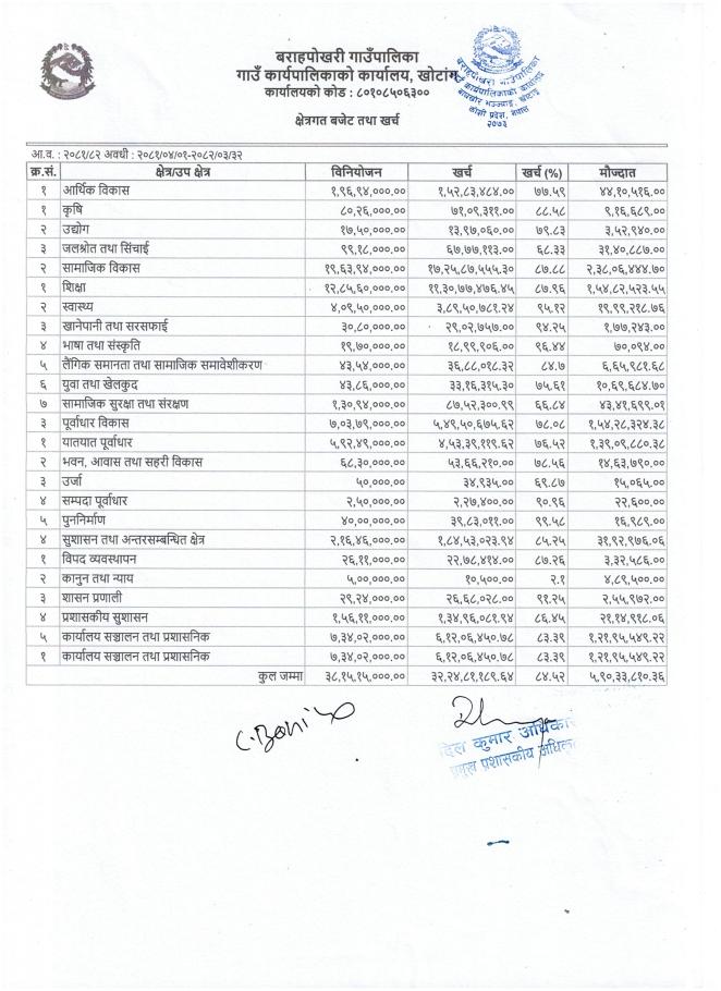 आ व २०८१।०८२ को क्षेत्रगत बजेट तथा खर्च