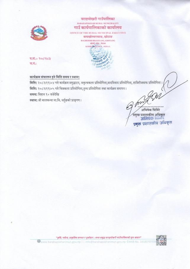 » पालिकास्तरीय अतिरिक्त क्रियाकलापका कार्यक्रमहरुमा सहभागिता जनाउने सम्बन्धी सूचना !!!