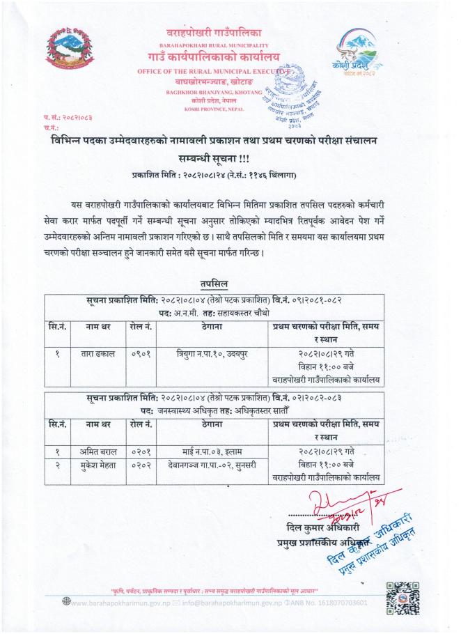 विभिन्न पदका उम्मेदवारहरुको नामावली प्रकाशन तथा प्रथम चरणको परीक्षा संचालन सम्बन्धी सूचना !!!