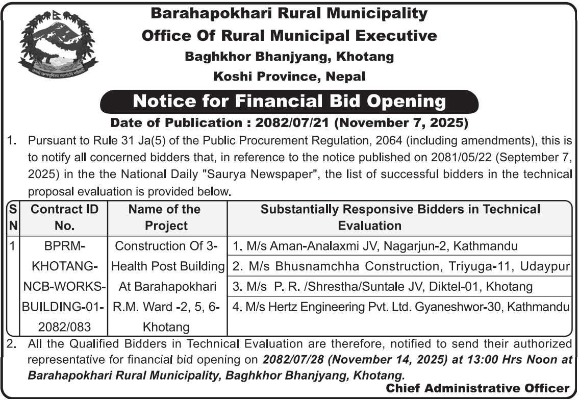 सार्वजनिक खरिद/बोलपत्र सूचना
