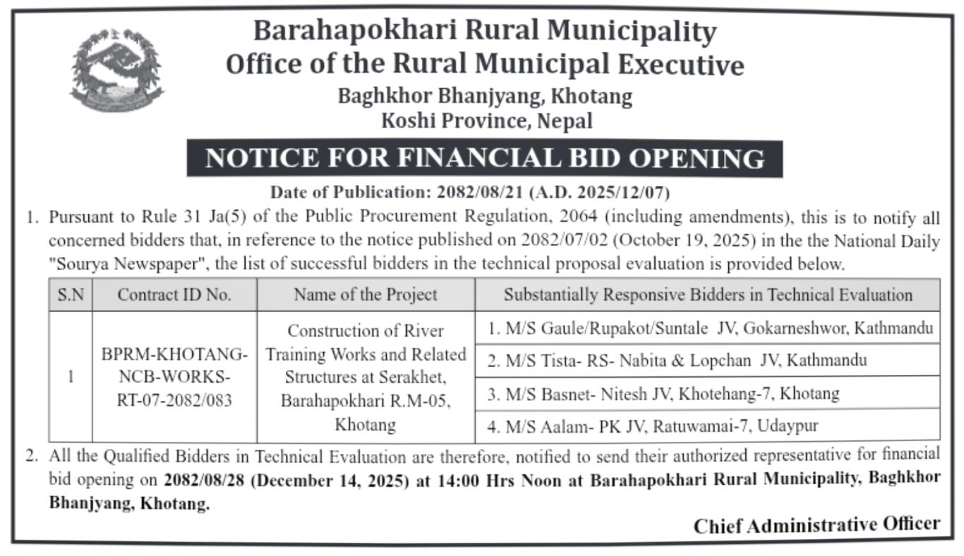 Notice For Financial Bid Opening!!!