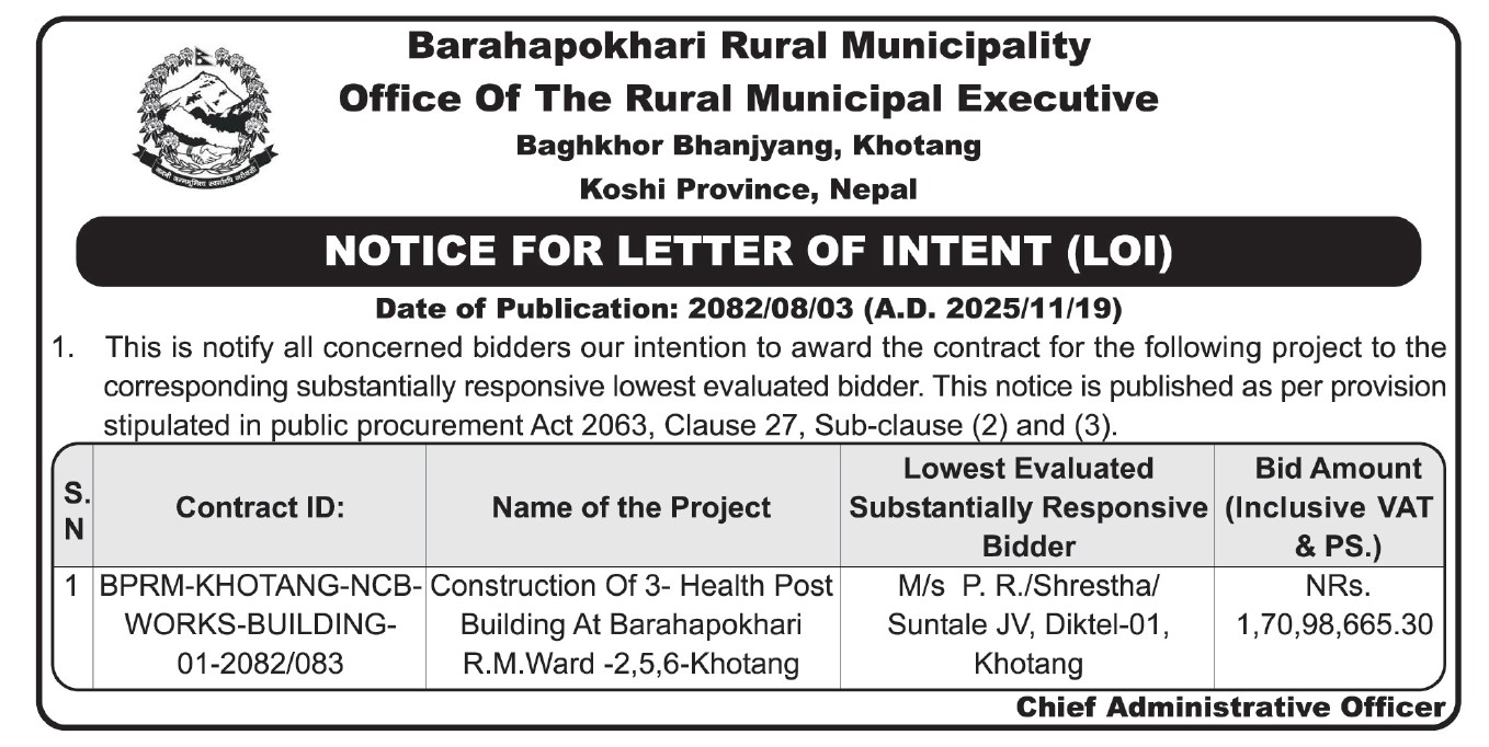 सार्वजनिक खरिद/बोलपत्र सूचना